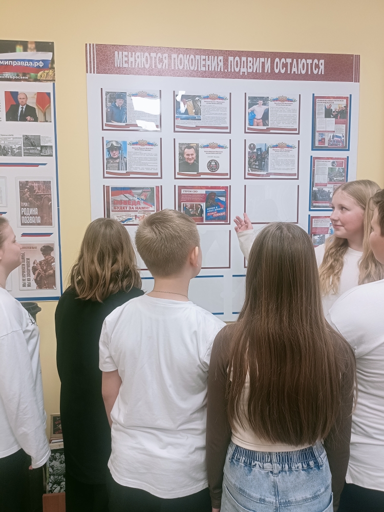 Активисты школьного музея провели экскурсию по тематической экспозиции «Поколения меняются — подвиги остаются»для своих сверстников, учеников ГБОУ ООШ №32.