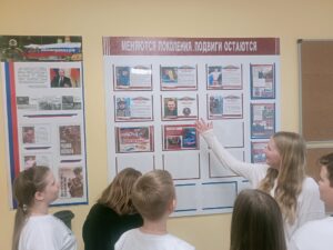 В ходе неё юные музейщики познакомили гостей с материалами о погибших участниках СВО, а также о тех, кто и сейчас исполняют свой долг на поле боя.